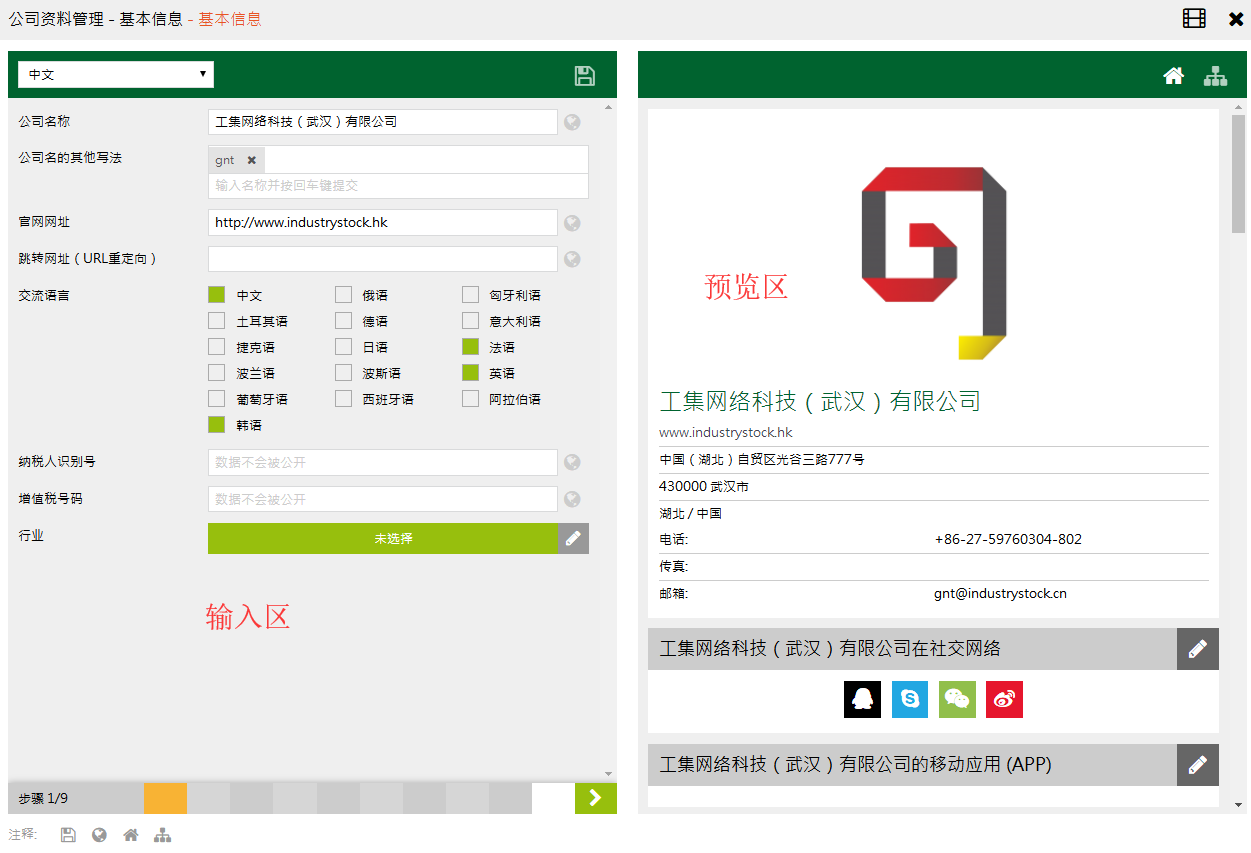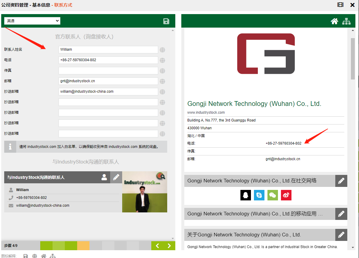 所以将左侧输入的信息保存之后,可以马上在右侧看到信息是如何展示的,如果在右侧发现哪里填错了需要修改,例如,发现电话填错了,点击电话,左侧会立即显示修改电话的区域。简单来说就是,在右侧,“哪里要改,点哪里”。