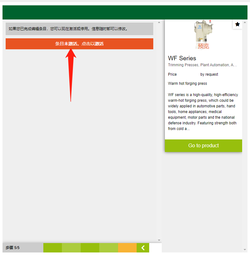 产品编辑完成并激活后即可在前台展示,未激活的状态将不被展示。