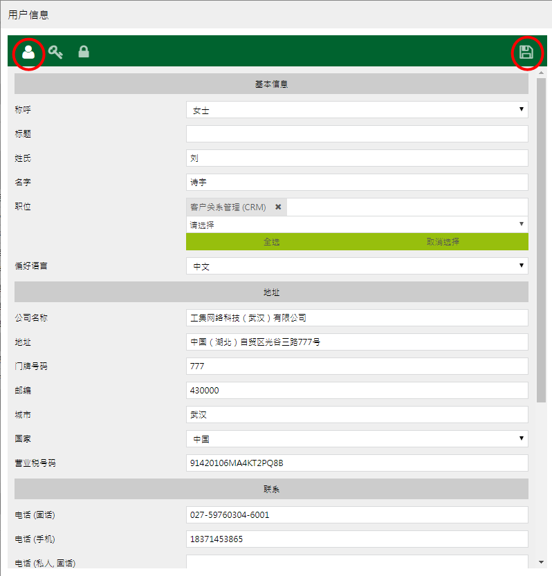 在左侧导航栏找到“设置”,点击“我的资料”。填写个人信息,最后点击磁盘图标保存。