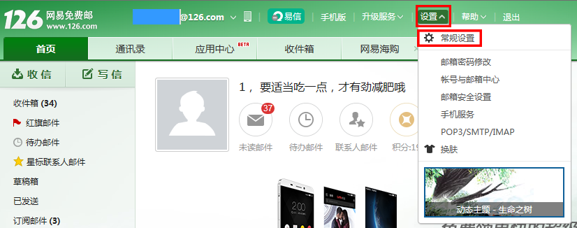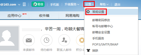 1、登录您的163邮箱,点击邮箱页面左上方的设置,选择常规设置;