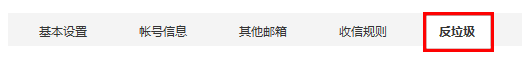 2、在邮箱设置中点击”反垃圾设置”,选择”设置域白名单”;