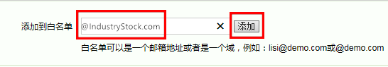 3、在输入框内输入”@IndustryStock.com”或者”IndustryStock.cn”后点击”添加到域白名单”;